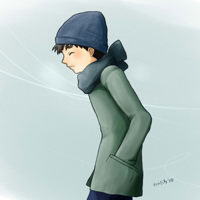 こんな薄手のコートじゃそりゃ寒いよな,と描きあがってから納得しました。