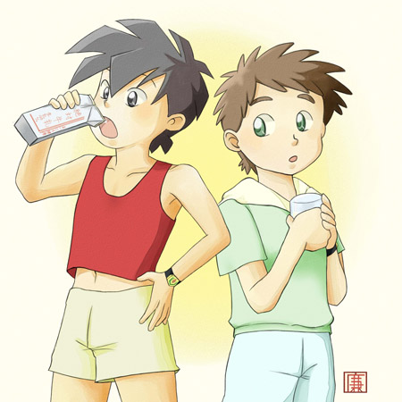 牛乳を飲む仁君と吼児君です。